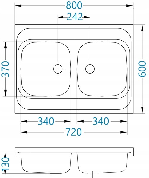 - Wymiary zlewozmywaka: 800 x 600 mm
