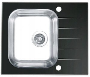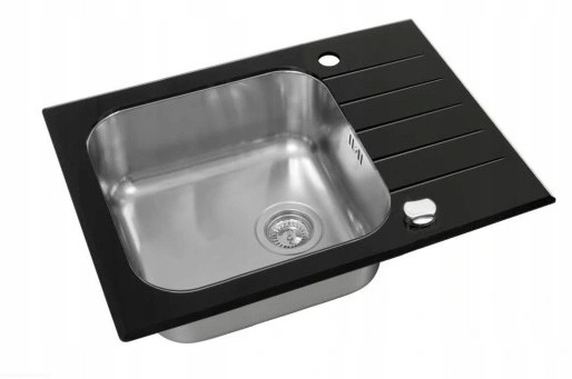Zlewozmywak szklany stalowy jednokomorowy wpuszczany w blat z ociekaczem