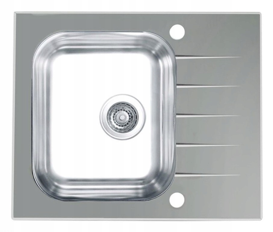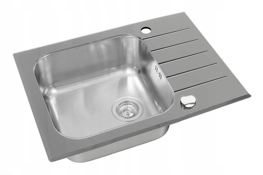 Zlewozmywak szklany stalowy jednokomorowy wpuszczany w blat z ociekaczem