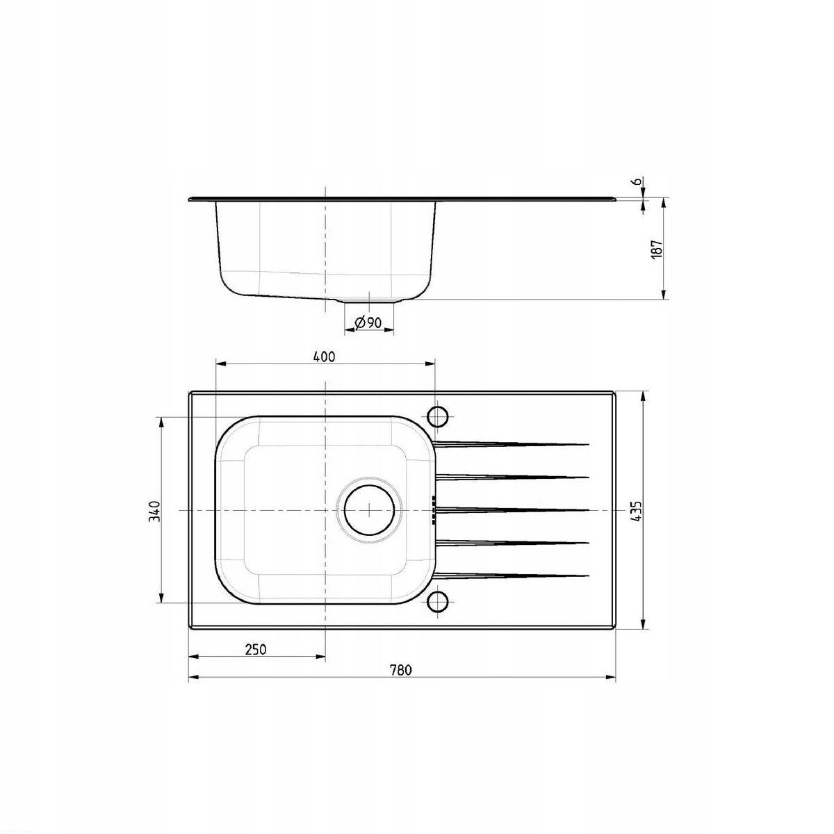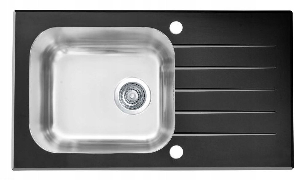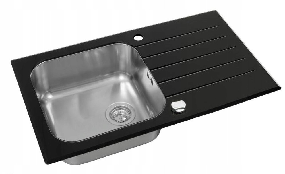 Zlewozmywak szklany stalowy jednokomorowy wpuszczany w blat z ociekaczem