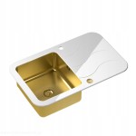Zlewozmywak szklany biały STALOWY ZŁOTY+ syfon