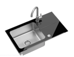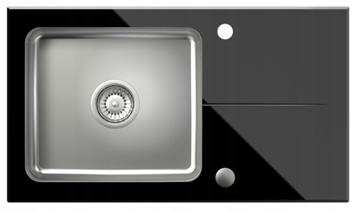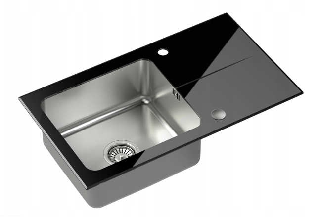 zlew zlewozmywak komora stalowa z czarnym blatem szklanym z syfonem i zaślepką + bateria