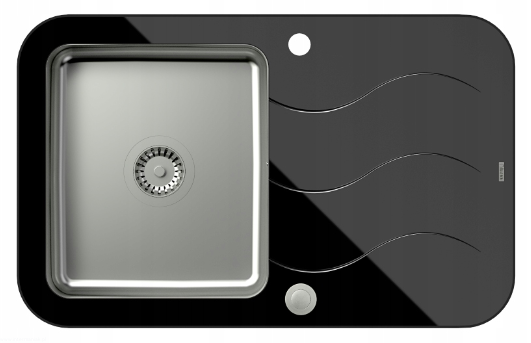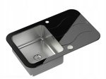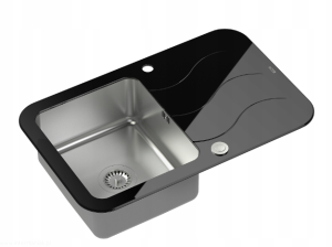 zlew zlewozmywak komora stalowa z czarnym blatem szklanym z syfonem